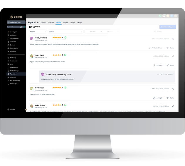 Using our all in one platform, generate and convert more leads for your business using SO CRM from SO Marketing.